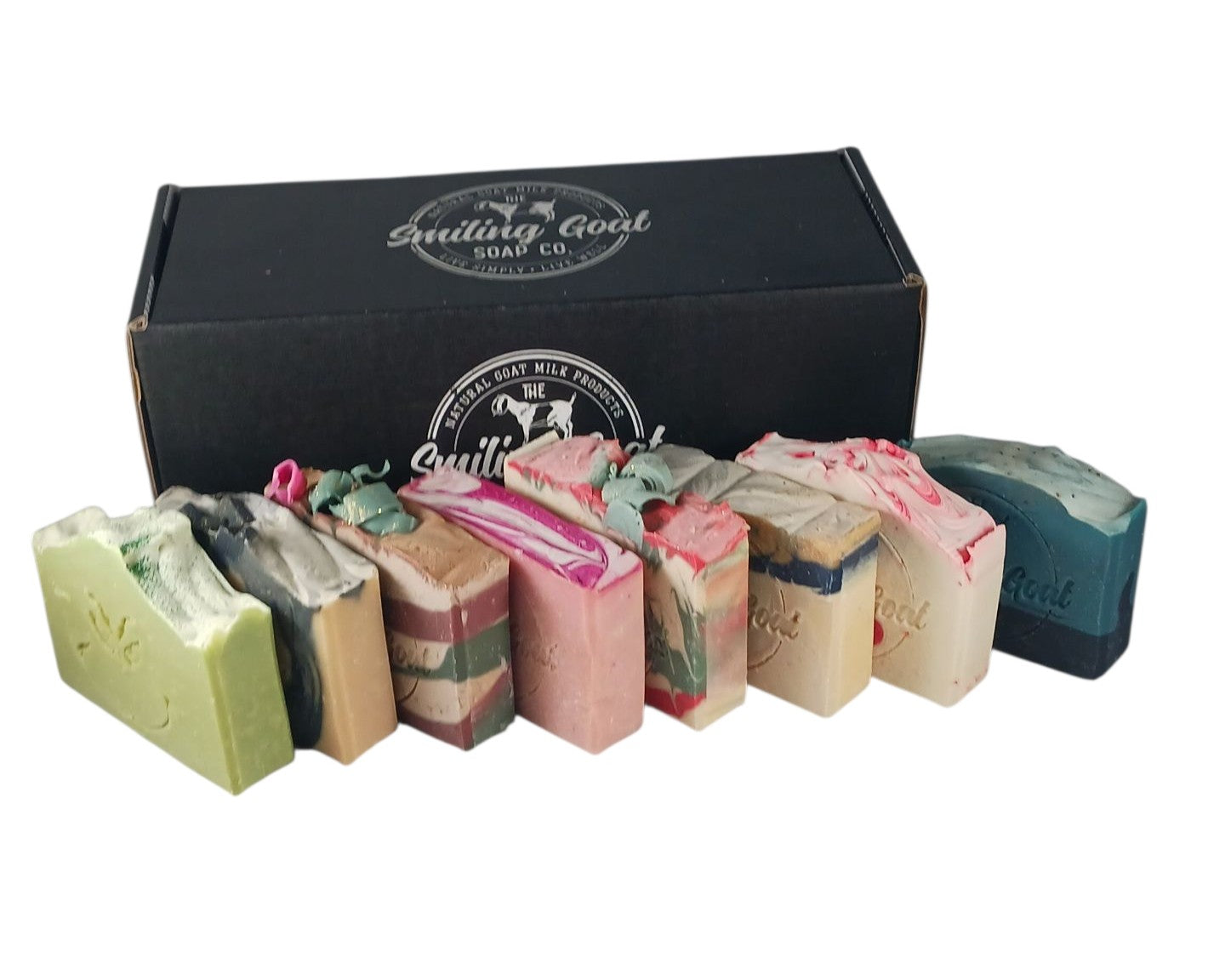 Our soap subscription box is created for those who love our products, love to be first in line, and love surprises. Our goal is to make our soap family smile. The soap subscription box is intended to put a smile on your face on a monthly or quarterly basis. Each box will contain eight bars of our luxurious, 4.5 oz. handmade goat's milk soap.